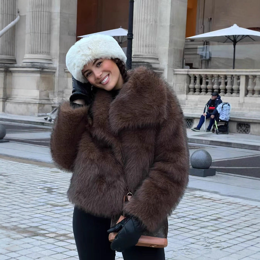 Damen Kurzmantel Mit Pelzähnlichem Design