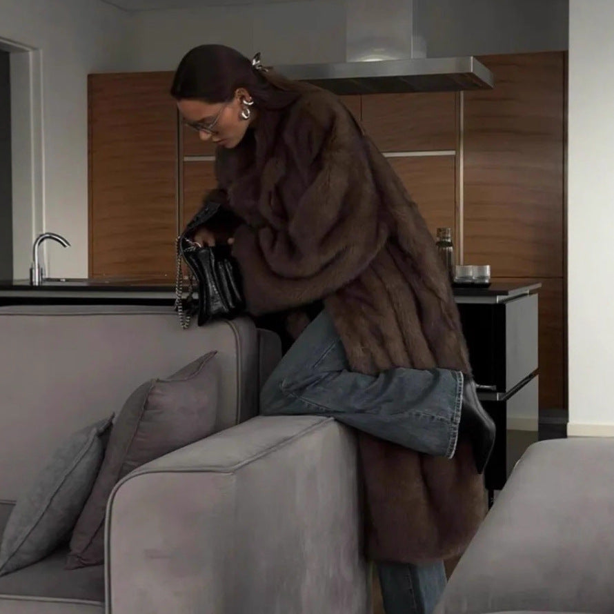 Dieser Damen Kunstfellmantel vereint einen klassischen Schnitt mit moderner Oversize-Optik. Die weiche Struktur und die dezente Gestaltung machen ihn zu einem stilvollen Begleiter für unterschiedliche Anlässe – von alltäglichen Momenten bis zu festlichen Events.