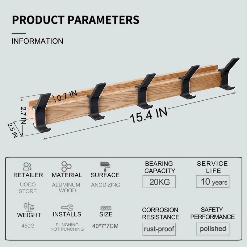 Bringe Stil und Struktur in deinen Eingangsbereich oder dein Schlafzimmer mit dieser modernen Wandgarderobe im Nordic Design. Aus hochwertigem Gummibaumholz und Aluminium gefertigt, verbindet sie Funktionalität mit minimalistischer Ästhetik – perfekt für jede moderne Einrichtung.