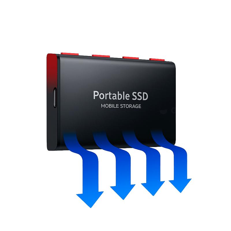 Diese externe SSD-Festplatte bietet zuverlässigen Speicherplatz und überzeugt mit rascher Datenübertragung. Ob Videos, Fotos oder wichtige Dokumente – alles lässt sich problemlos sichern und jederzeit abrufen. Dank ihres handlichen Formats passt sie in jede Tasche und ist sofort einsatzbereit.