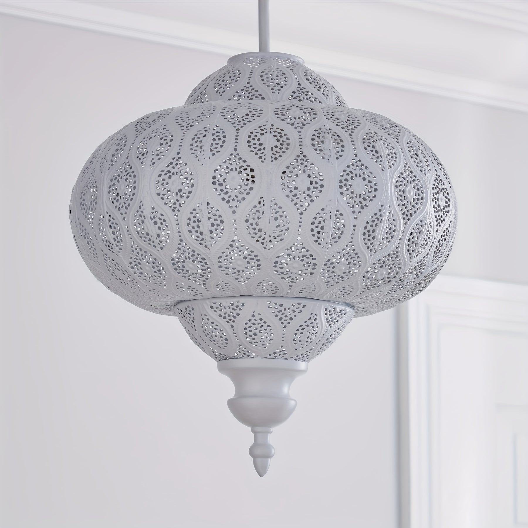 Diese dekorative Hängelampe im orientalischen Stil sorgt für ein faszinierendes Lichtspiel und bringt eine warme Atmosphäre in jeden Raum. Das detailreiche Muster im Metallschirm erzeugt ein Spiel aus Licht und Schatten, das an traditionelle Handwerkskunst erinnert. Ob im Wohnzimmer, Schlafzimmer oder Essbereich – diese Lampe setzt stilvolle Akzente mit antikem Charakter.