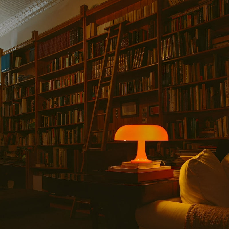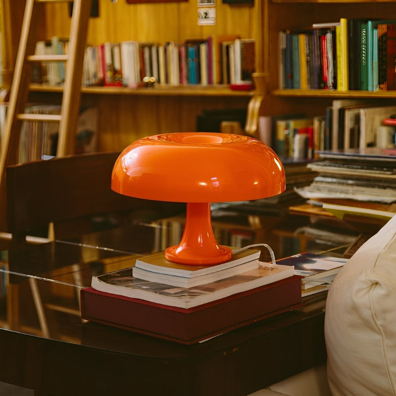 • Retro-inspiriertes Pilzdesign in Orange oder Cremeweiß