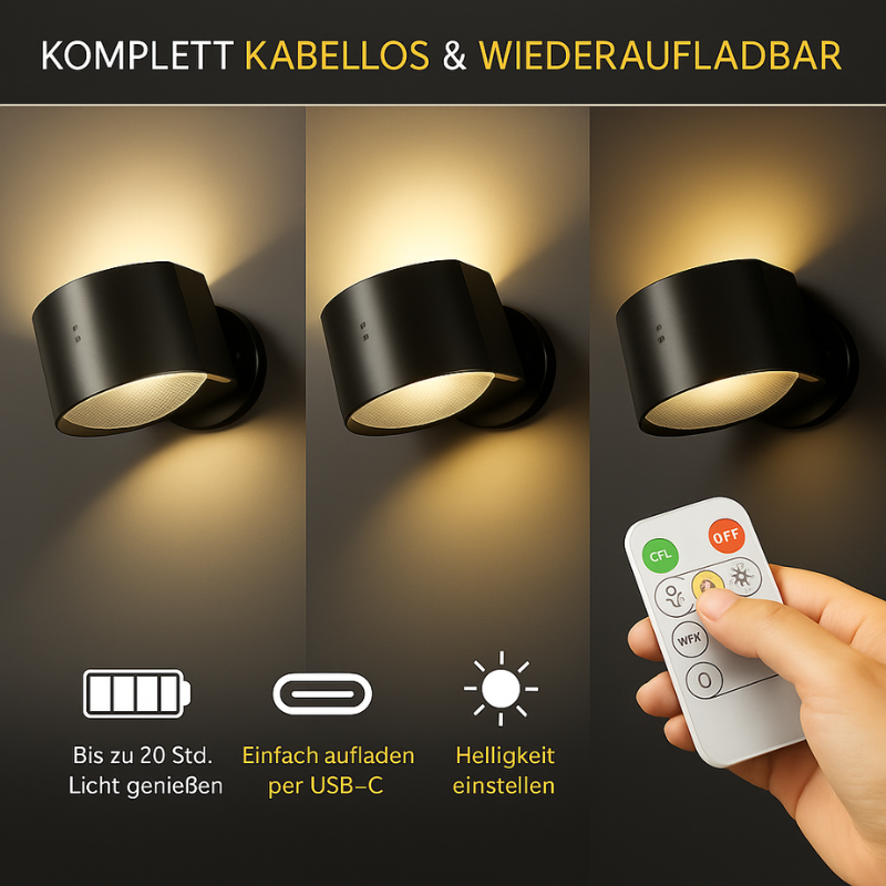 • Kabellos & wiederaufladbar – Kein Anschluss nötig, einfach per USB-C laden