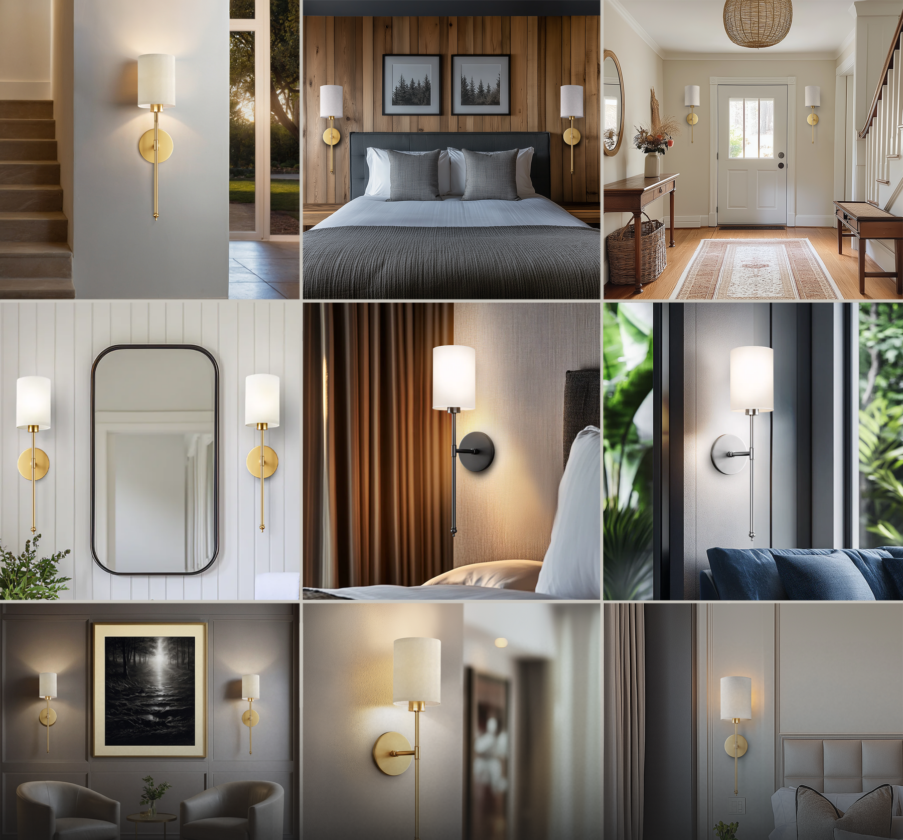 Diese kabellosen Zylinder-Wandlampen kombinieren modernes Design mit praktischer Funktionalität – ganz ohne Kabel oder Installationsaufwand. Ob im Schlafzimmer, Flur oder Wohnzimmer: Die schlanke, zylindrische Form mit goldenen oder schwarzen Akzenten sorgt für eine elegante Lichtstimmung in jedem Raum.