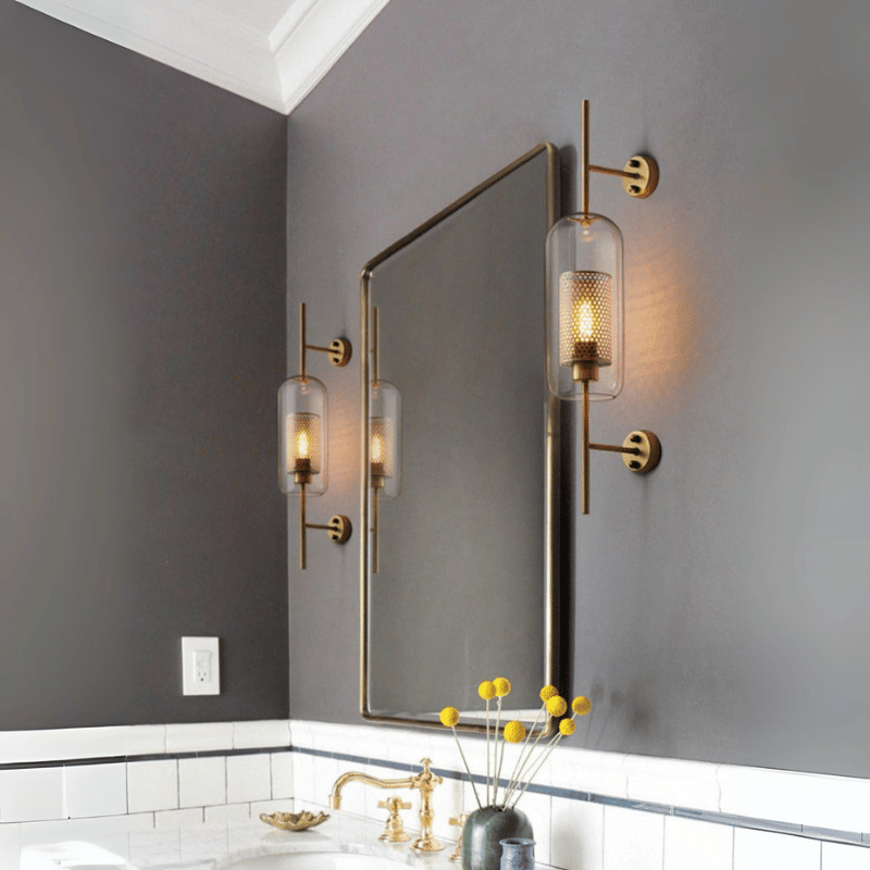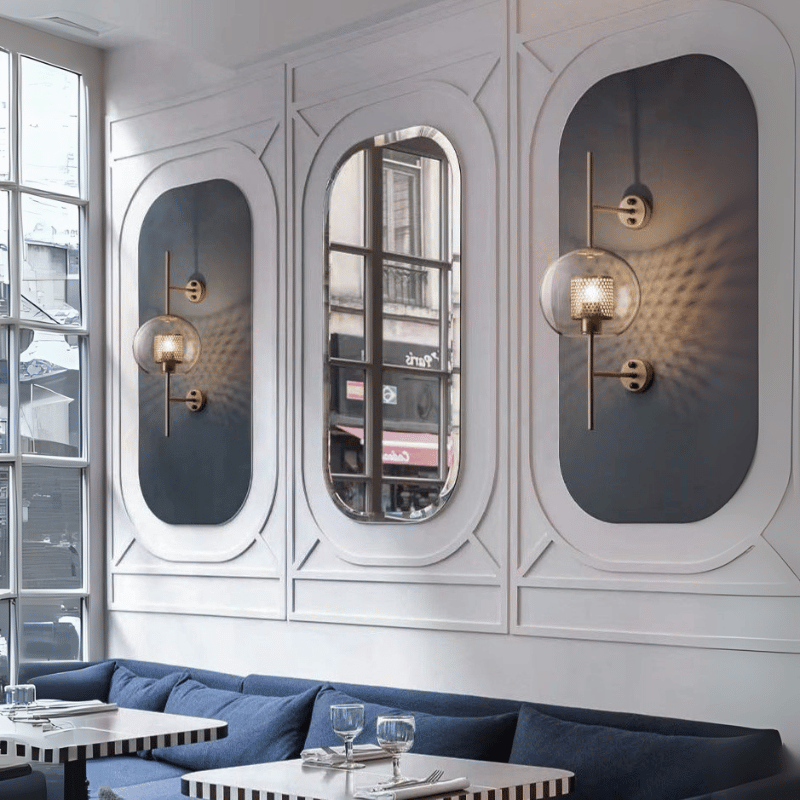 Wandlampe mit Waben-Glaskugel – Modernes Design mit Messingrahmen